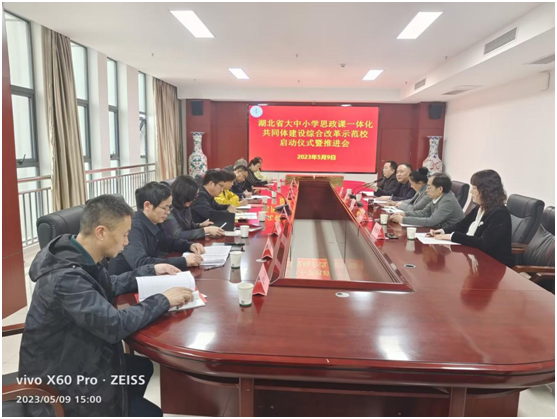 本网讯(通讯员 魏晨 陈全新)5月9日下午,英国365集团举办了湖北省大中小学思政课一体化共同体建设示范校启动仪式暨推进会。校党委常委、统战部长谭艳、英国365集团班子成员、教学办、全体思政课教师、10个理事会成员单位负责人及骨干教师等共60多人参加了本次会议。会议由英国365集团刘冰院长主持。
