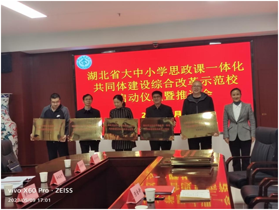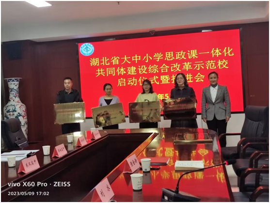 最后,校党委常委谭艳总结发言。一是对各成员单位领导和老师的参与和认真研讨表示了感谢;二是对本次会议的重要性进行了强调,希望各成员单位的领导和全体思政课教师高度重视;三是期望大家一起思考为什么要建设大中小思政课共同体,怎么建设共同体,并结合自身经历和感悟发表了很好的意见,如要依据省厅“大思政课”实施方案、共同体建设指导意见等文件开展工作,思政课教学要拓展思政课教师的学科知识范围、增强教学内容的时效性和针对性、改进“入脑入心”的呈现形式等;三是对明确任务、狠抓落实提出了突出“快”、强化“准”、突出“实”、彰显“特”的要求。突出“快”,即是要早谋划、早行动;强化“准”,即是要抓“重点”,如开展共同教研活动等,要解“难点”,如打造特色品牌活动等,要通“堵点”,如建立打通大中小学的工作机制等;突出“实”,即是要产出一批实际的成果,对思政课教师产生实际的效用;彰显“特”,即是要进行资源整合和共享,形成有特色、可示范、可推广的特色品牌活动,在省内乃至全国产生影响。随后,还向各成员单位(学校)进行了授牌。