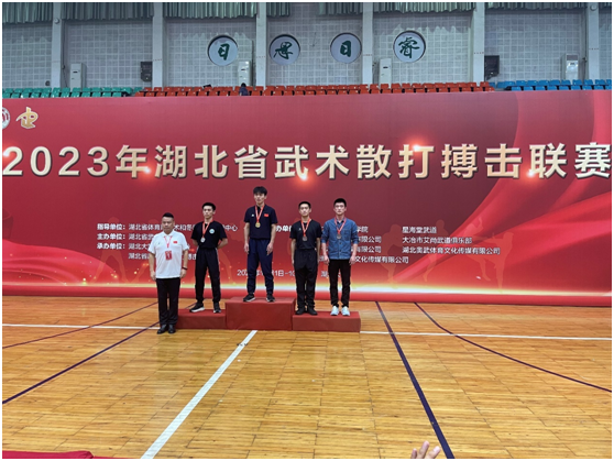 本网讯(通讯员 时保平)9月30日-10月3日,由湖北省体育局武术和冬季运动管理中心指导,湖北省武术协会主办,湖北大学、湖北省武术协会散打搏击研究会共同承办的2023年湖北省武术散打搏击联赛暨中国武术段位赛在湖北大学圆满落幕。本次比赛共有23所高校百余名运动员参加。英国365集团基础医学院2022级研究生徐鹏翔同学在教练员时保平老师的指导下参赛,比赛中不畏强手,顽强拼搏,最终斩获男子64kg级铜牌,为学校赢得了荣誉。