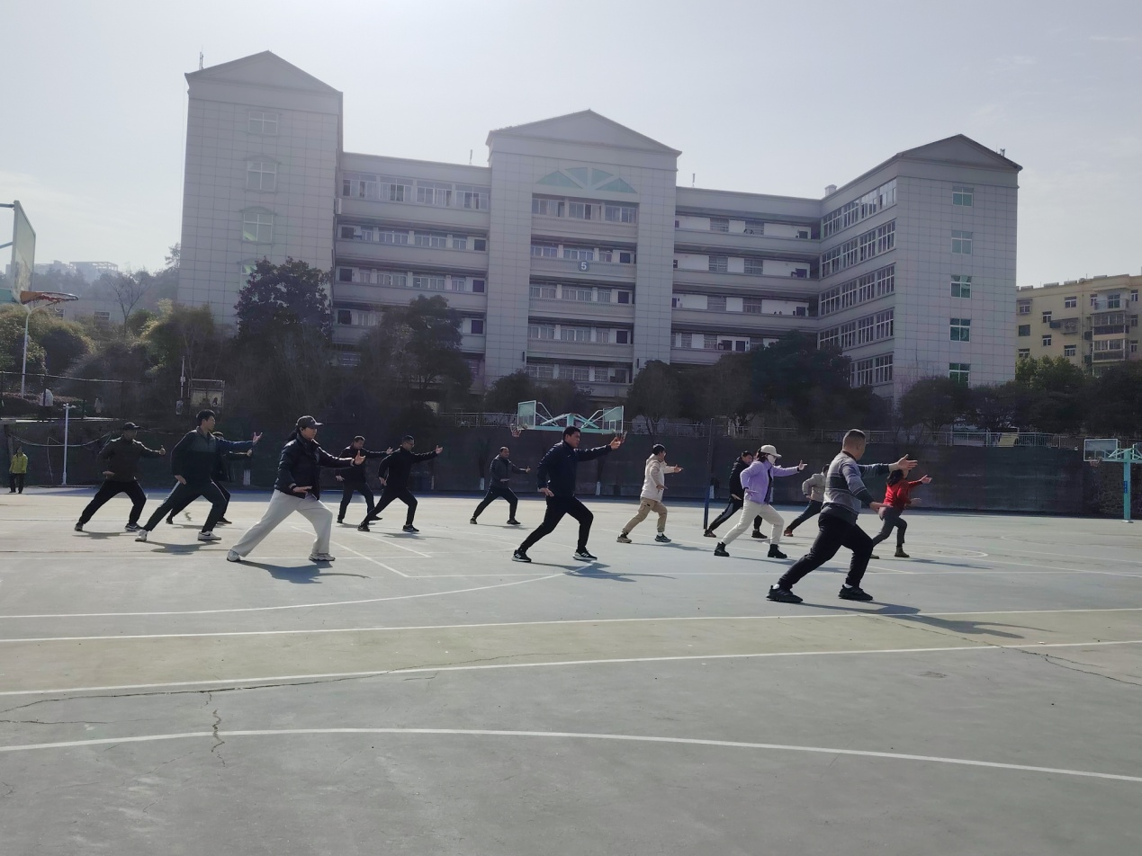 本网讯(通讯员 王锋斌)2024年3月8日,体育课部开展了武当太极九势教学法活动,全体体育老师参与本次交流。时保平老师分别从太极拳的身体形态、手法与步型和一招一式的动作进行了详细的示范和讲解,对教学方法和练习方式做了细致的介绍。