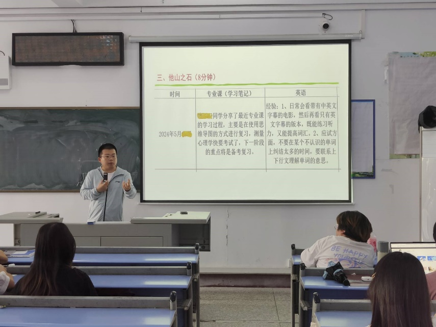 朱明一老师从课程学习与复习备考要注重方法的反思与总结、注重各个课程复习的时间安排以及考试自信心三个方面对同学们的学习做了要求与指导。他希望同学们能够用学习的心理学知识解决学习中的问题,积极学习与分享有效的学习经验,形成良好的班级学习氛围。