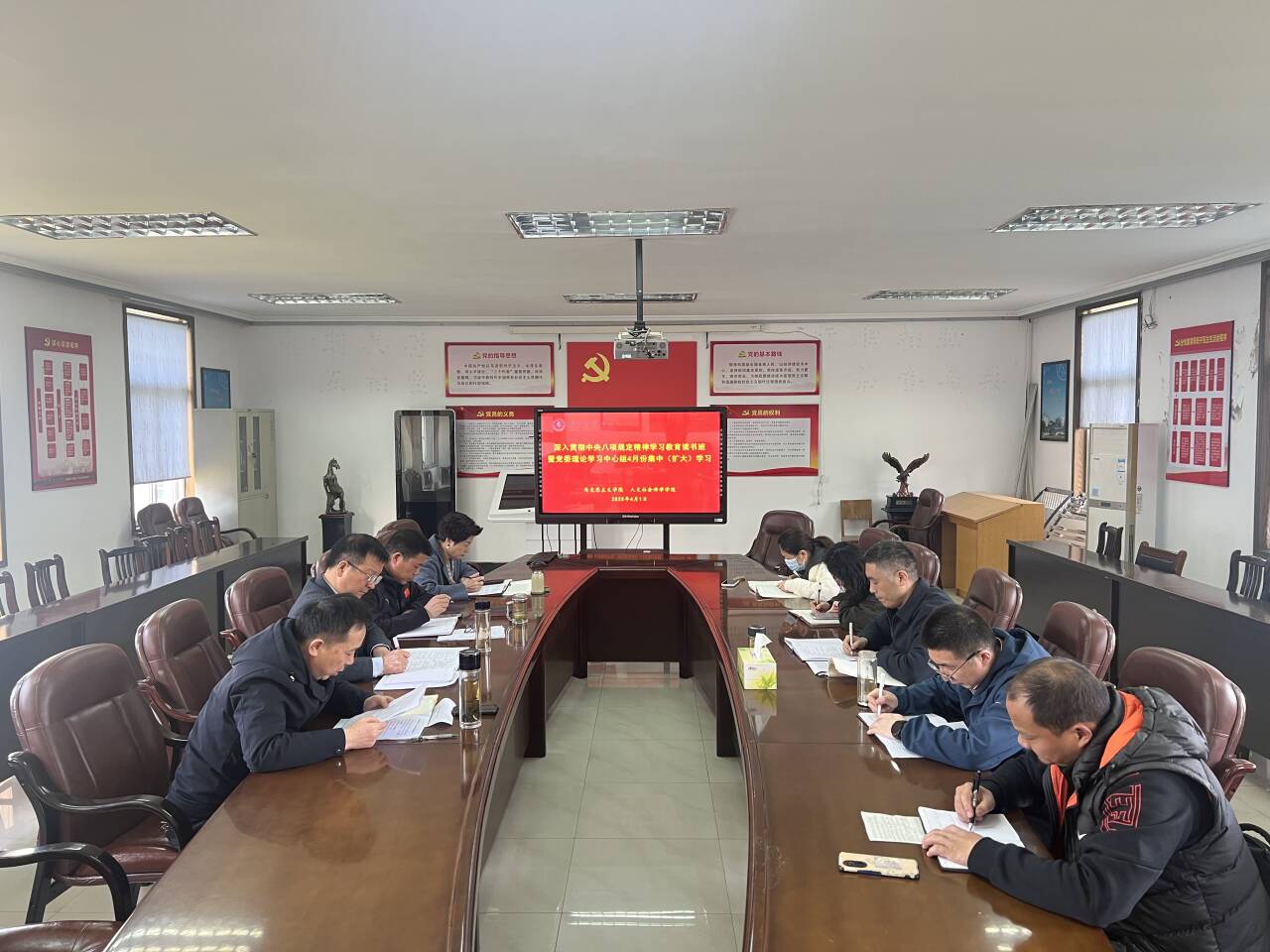 孔祥清领学习近平总书记关于深入贯彻中央八项规定精神学习教育的重要讲话和重要指示批示精神;院长陈全新领学中央党的建设工作领导小组会议精神以及中共中央办公厅印发《关于在全党开展深入贯彻中央八项规定精神学习教育的通知》;人文学院副院长朱红军领学习近平总书记关于中央八项规定的重要论述摘编;副院长孙磊省市委关于深入贯彻中央八项规定精神学习教育的相关会议精神;党建组织员袁文领学《习近平关于加强党的作风建设论述摘编》第6专题。