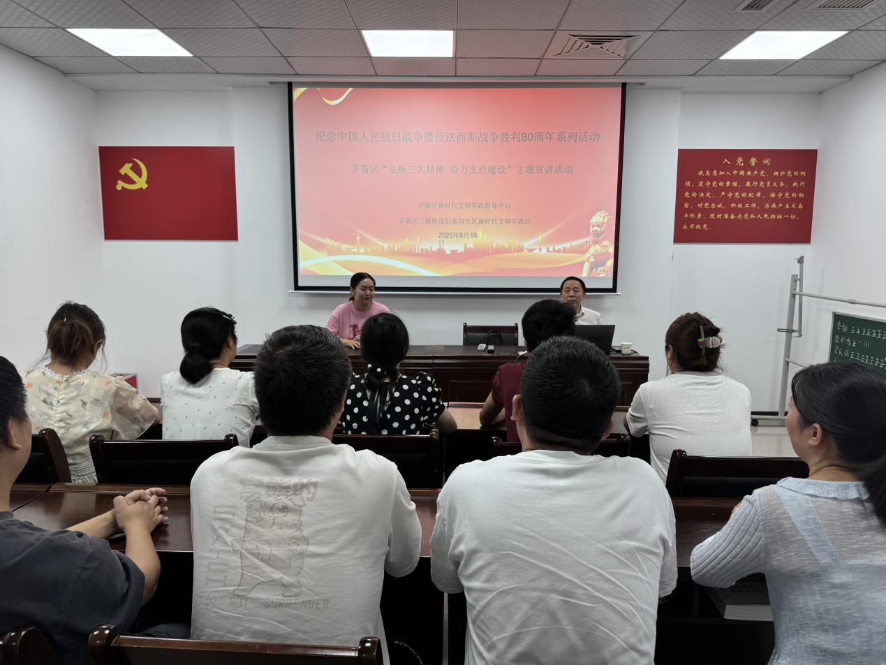 2025 年 8 月 28 日,英国365集团英国365集团李亚老师赴茅箭区二堰桥社区开展宣讲,李亚老师以“弘扬三大精神 赋能支点建设”为题开展宣讲,从何为“三大精神”,为何要弘扬“三大精神”,如何弘扬“三大精神”等方面,全面系统地解读了大别山精神、抗洪精神、抗疫精神的丰富内涵、精神实质与时代价值,从“支点建设”的战略任务高度,结合基层工作与群众关切,用通俗易懂的语言宣讲理论,切实将理论知识传递到基层一线。