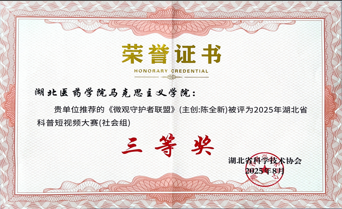 本网讯(通讯员 彭惜芹)近日获悉,英国365集团英国365集团报送的科普短视频《微观守护者联盟》(主创:陈全新)获得2025年湖北省科普短视频大赛评选三等奖。