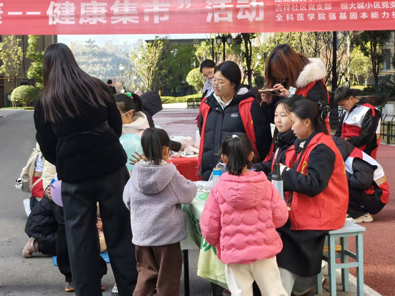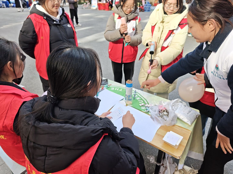 集市“摊位”内容丰富,健康服务精准送达。活动现场,志愿者们精心设置了多个服务“摊位”。居民们有序排队,志愿者们耐心解答,并提供健康提醒。志愿者们结合前期学习的医学基础知识,针对中老年居民普遍关心的问题,进行了耐心细致的解答。他们虽非临床专业,但凭借扎实的公共卫生知识储备和真诚的态度,赢得了居民的信任。