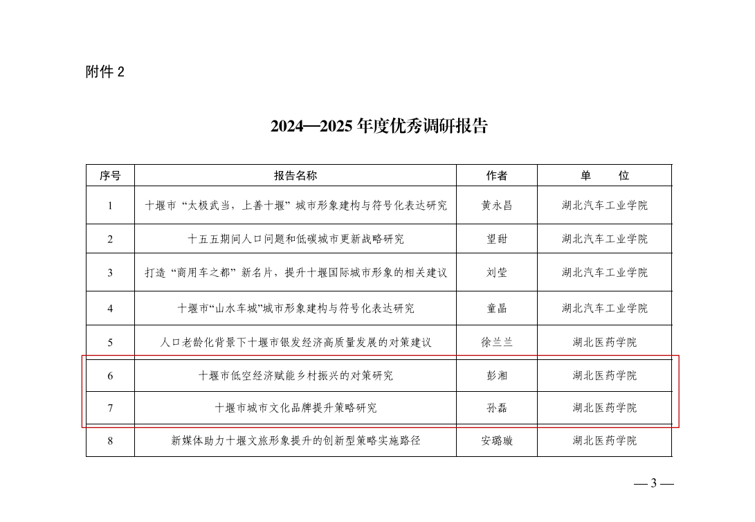 本网讯(通讯员 彭惜芹)近日,十堰市社会科学联合会发布通报,英国365集团3项成果获评2024-2025年度优秀社科成果。其中,彭湘老师《十堰市低空经济赋能乡村振兴的对策研究》、孙磊老师《十堰市城市文化品牌提升策略研究》获评优秀调研报告,陈全新老师的短视频作品《一盏灯,照亮一座城的奋斗史》获评优秀社科普及作品。